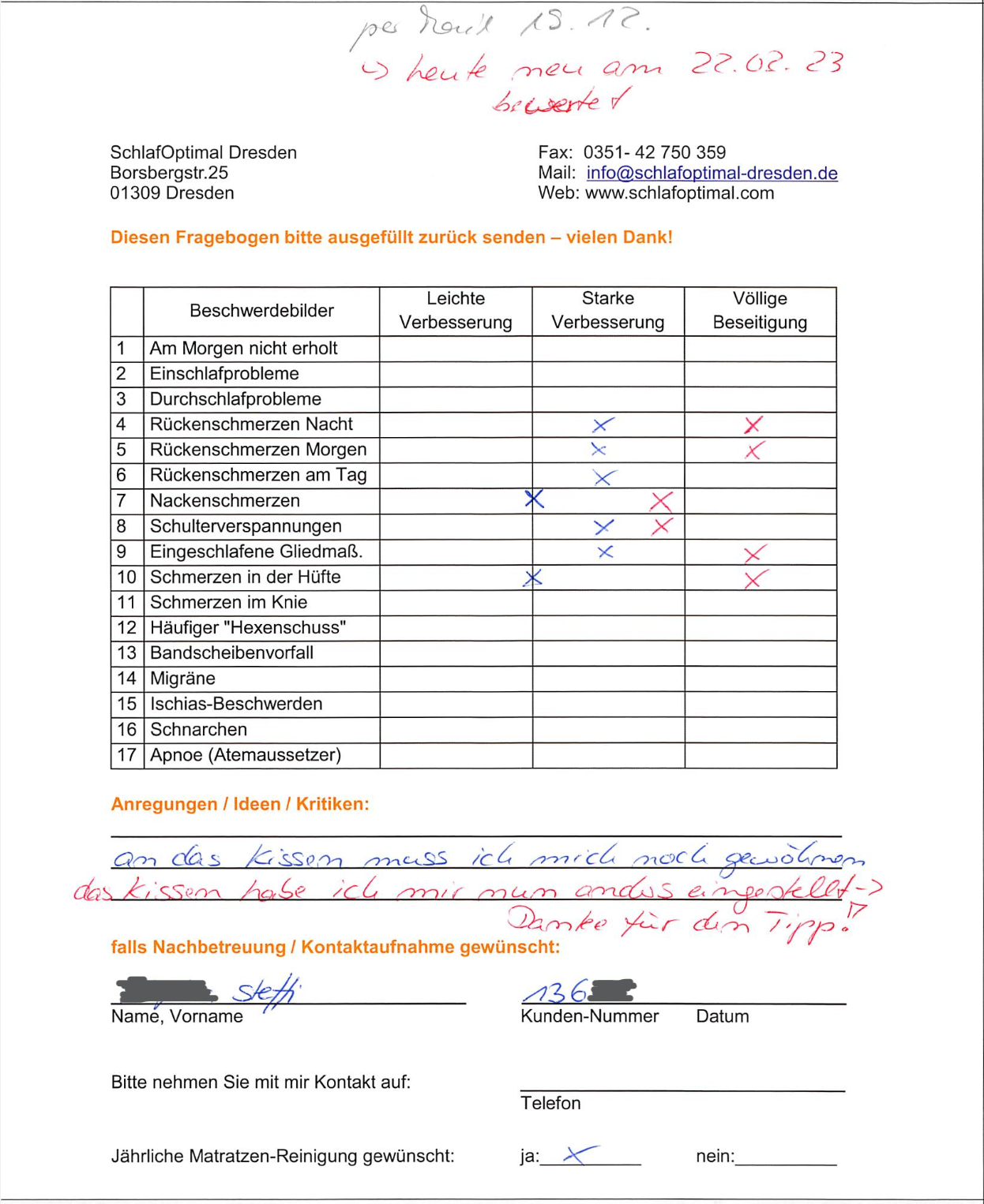 “„Ich schlafe sehr gut auf der Matratze, obwohl ich anfangs eher skeptisch war. Sehr gut fand ich auch das Nachsorgepaket, besonders hervorheben möchte ich die nette und persönliche Betreuung.“”