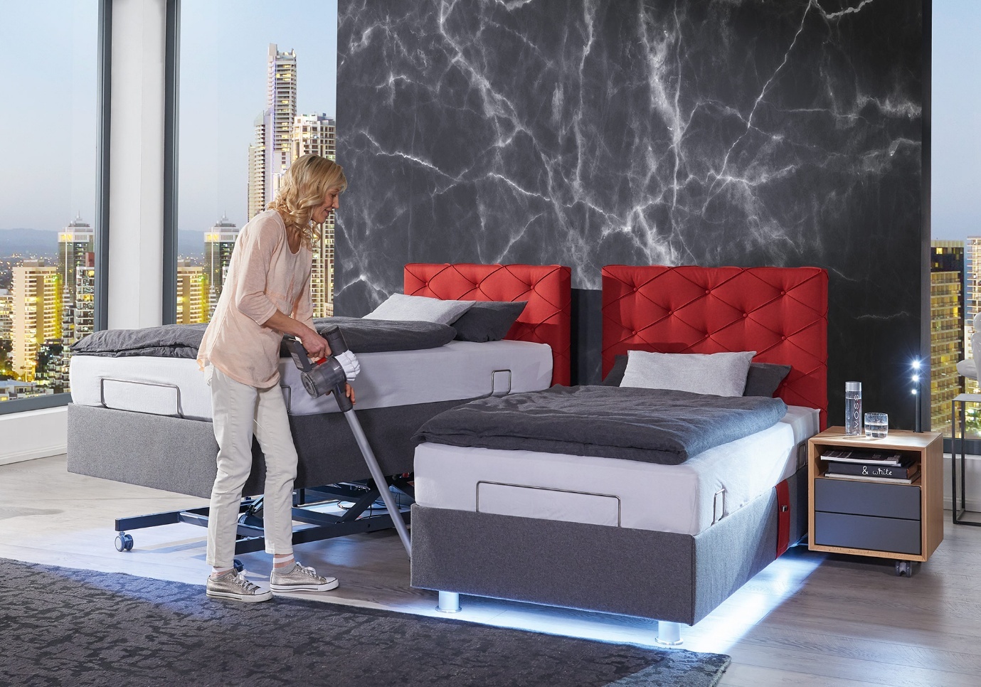 1-motorisch: Stufenlose Höhenverstellung des Bettrahmens bis 38cm